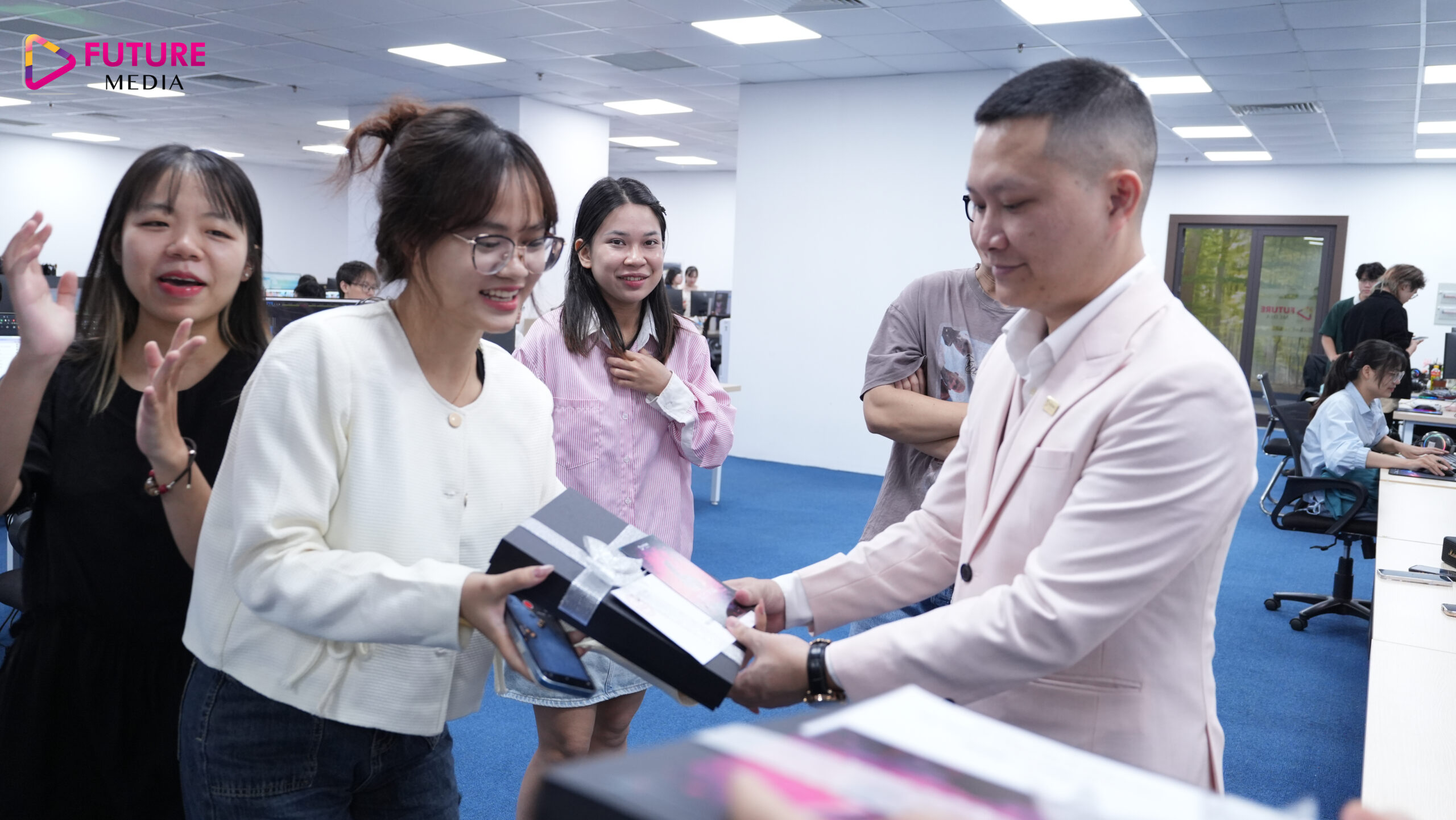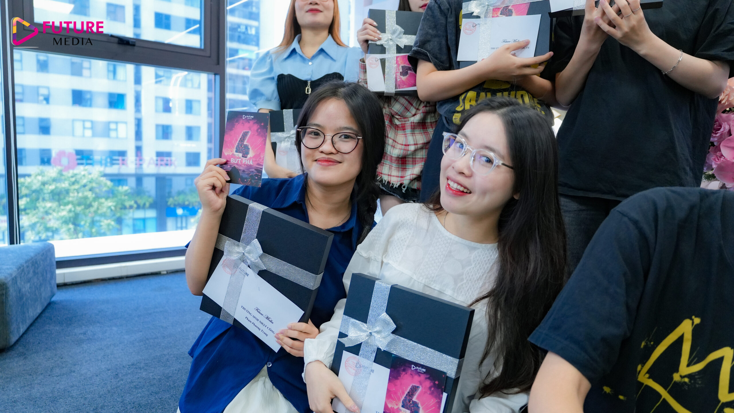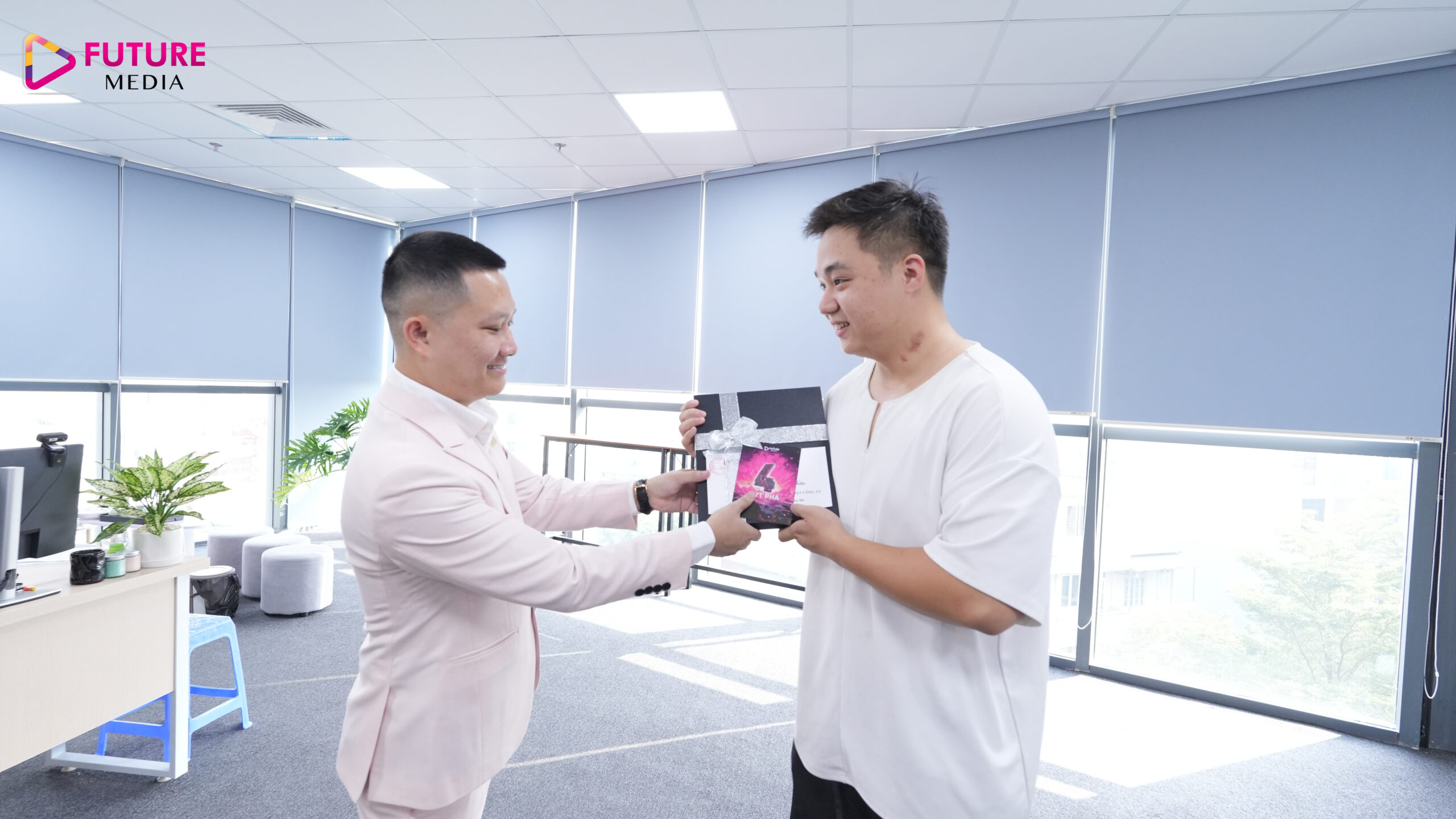 Mừng Future Media tròn 4 tuổi, anh Nguyễn Bá Hoan – CEO của Future Media đã trao tận tay các nhân sự nhà F món quà sinh nhật, tấm thiệp tri ân, thay sự ghi nhận, lời cảm ơn tất cả anh chị em vì đã đồng hành và cống hiến không ngừng nghỉ.
