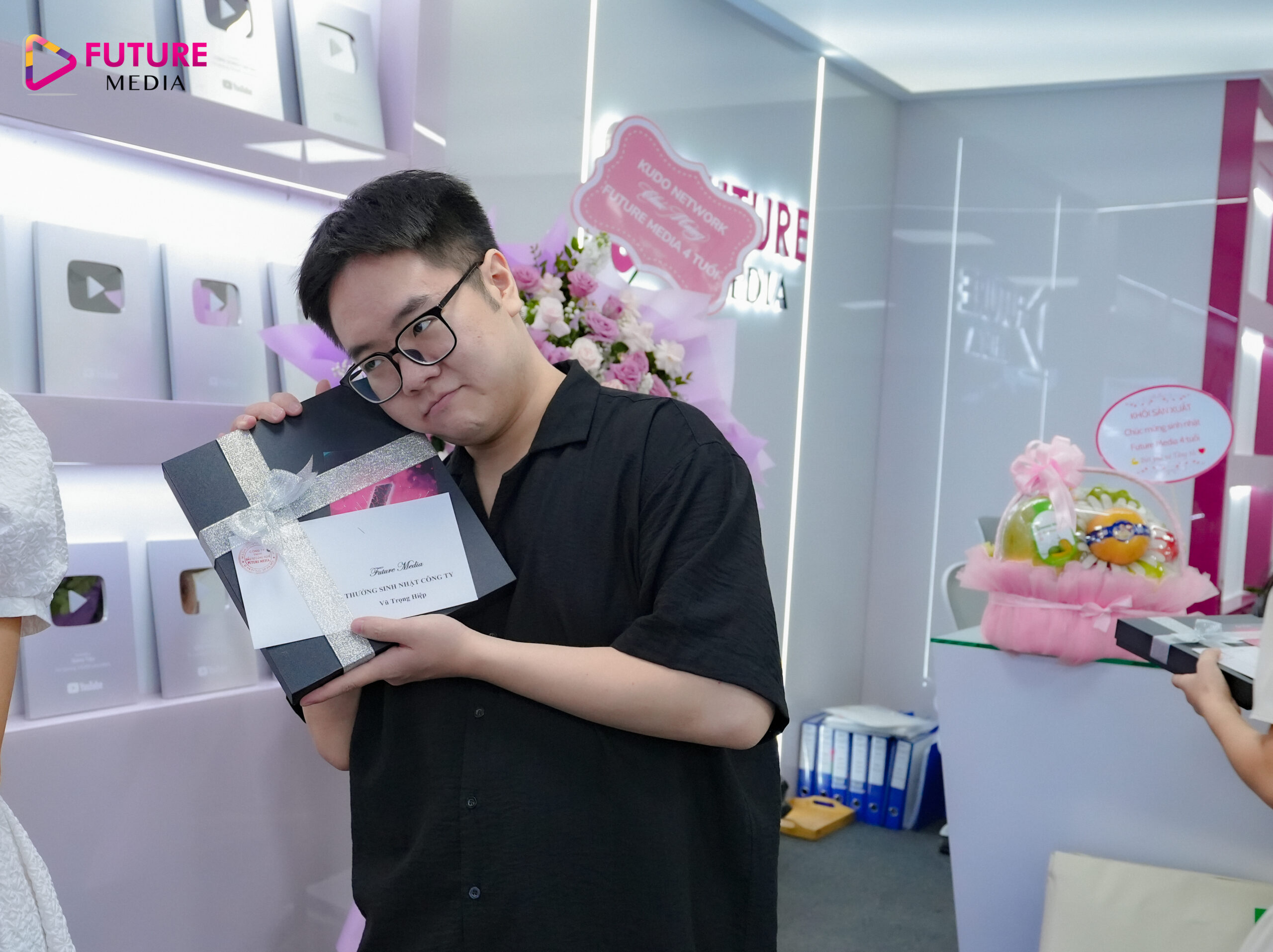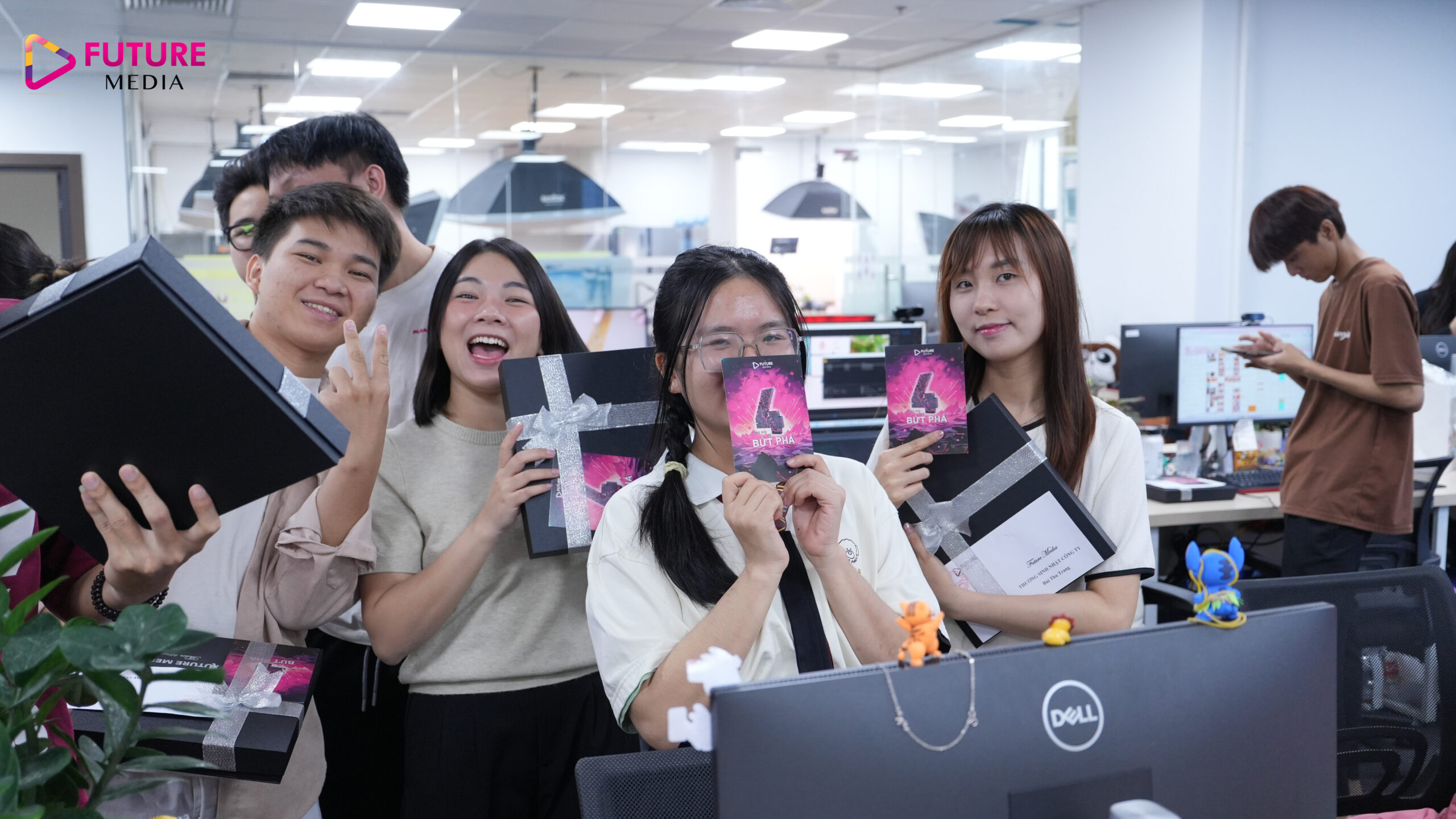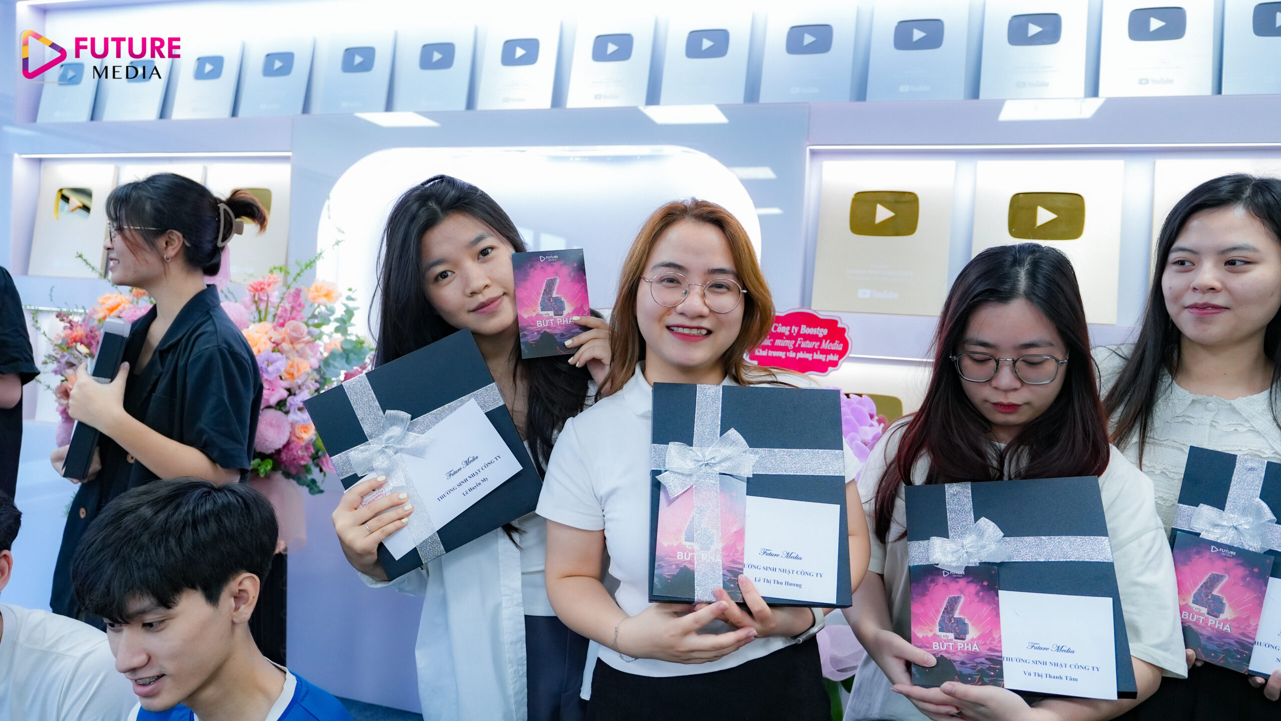 Mừng Future Media tròn 4 tuổi, anh Nguyễn Bá Hoan – CEO của Future Media đã trao tận tay các nhân sự nhà F món quà sinh nhật, tấm thiệp tri ân, thay sự ghi nhận, lời cảm ơn tất cả anh chị em vì đã đồng hành và cống hiến không ngừng nghỉ.