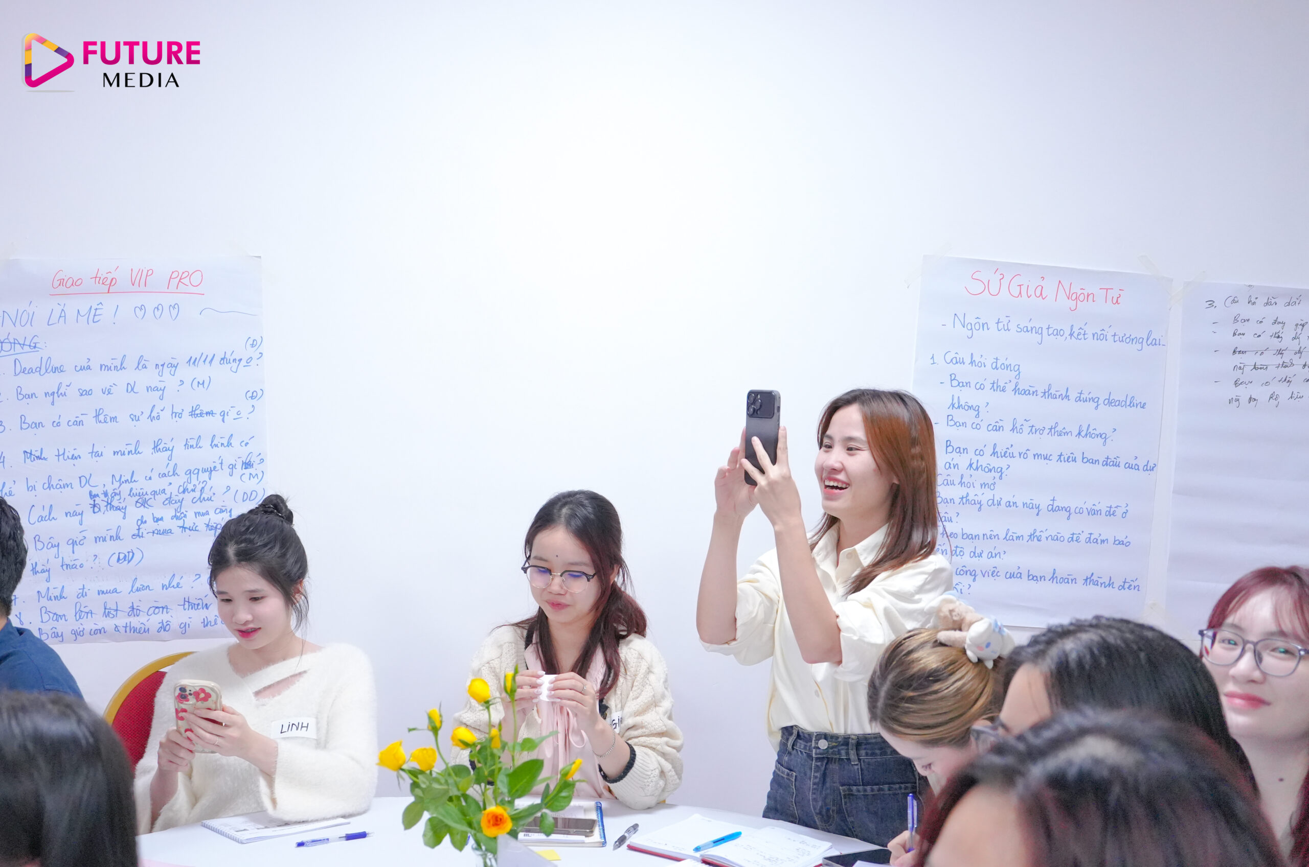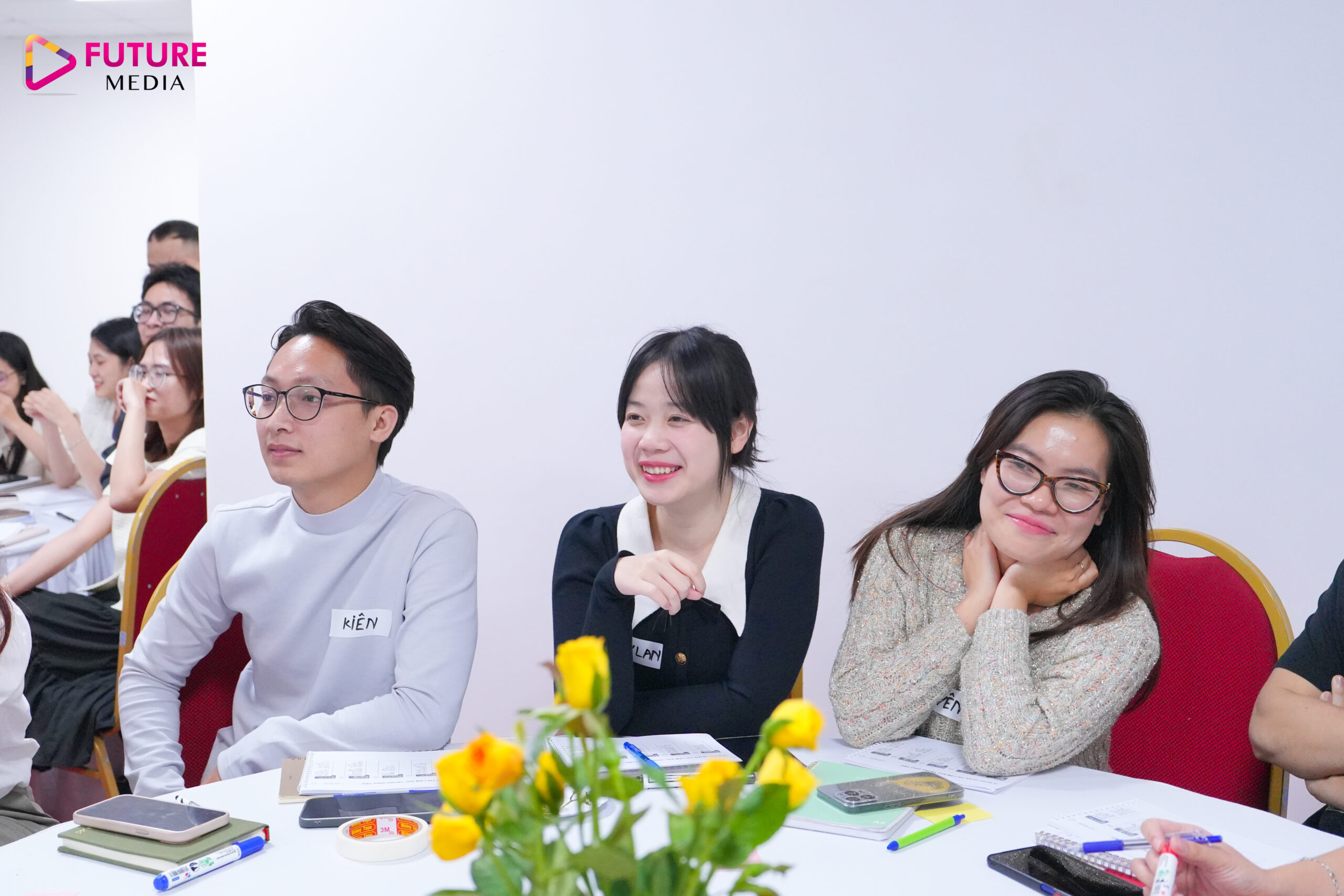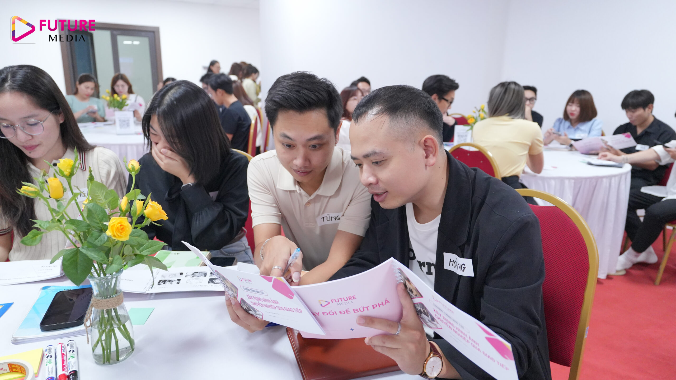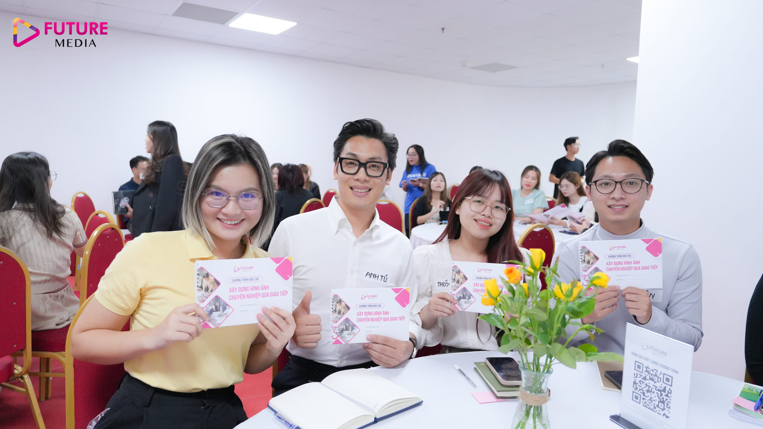 Với mục tiêu phát triển Công ty lớn mạnh bắt đầu từ phát triển năng lực nhân sự cho đội ngũ cốt cán nhà Future Media, chương trình đào tạo về “Xây dựng hình ảnh chuyên nghiệp qua giao tiếp” đã được tổ chức với sự tham gia đông đủ của các cấp quản lý và nhân sự nguồn nhà F.