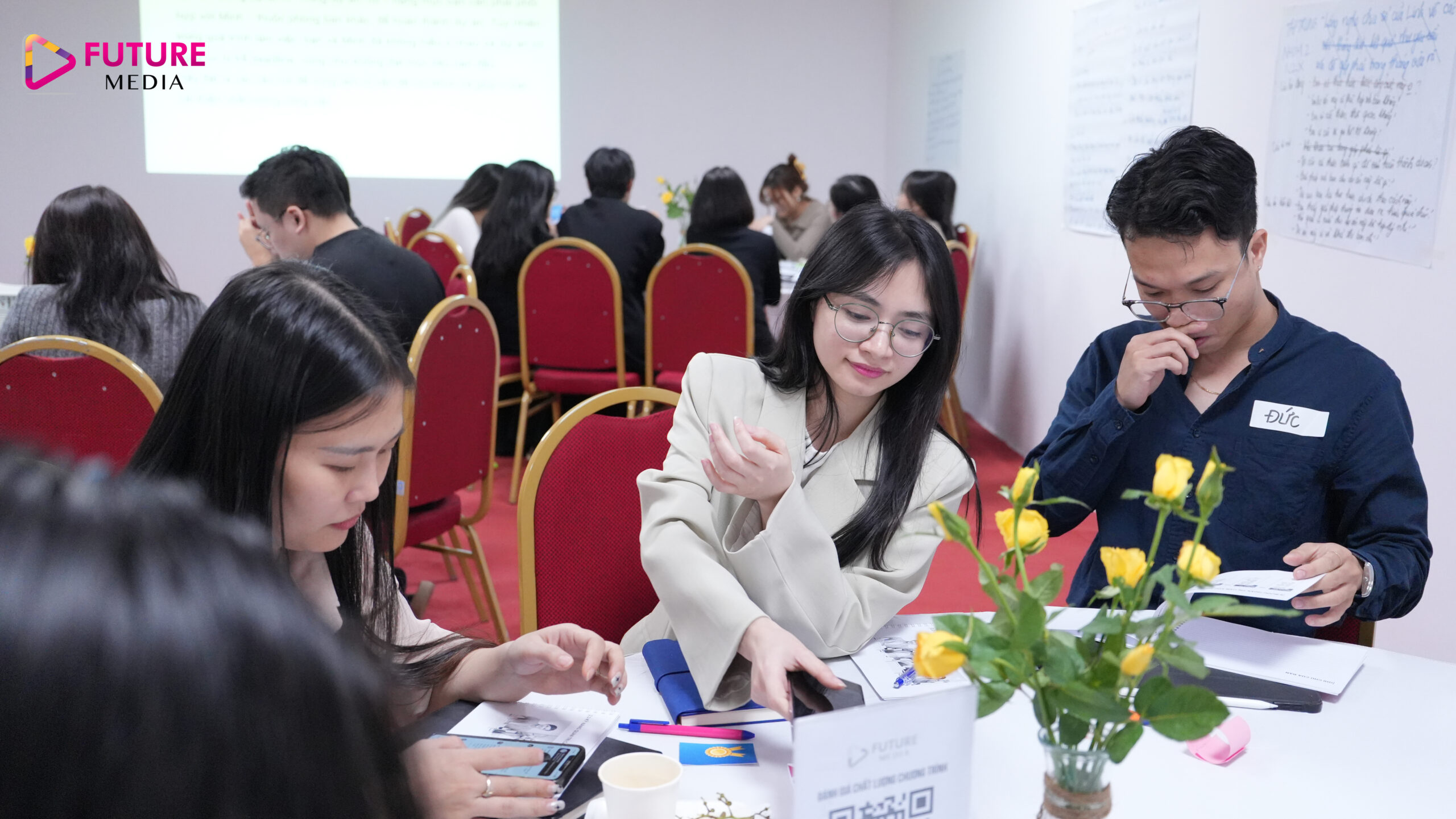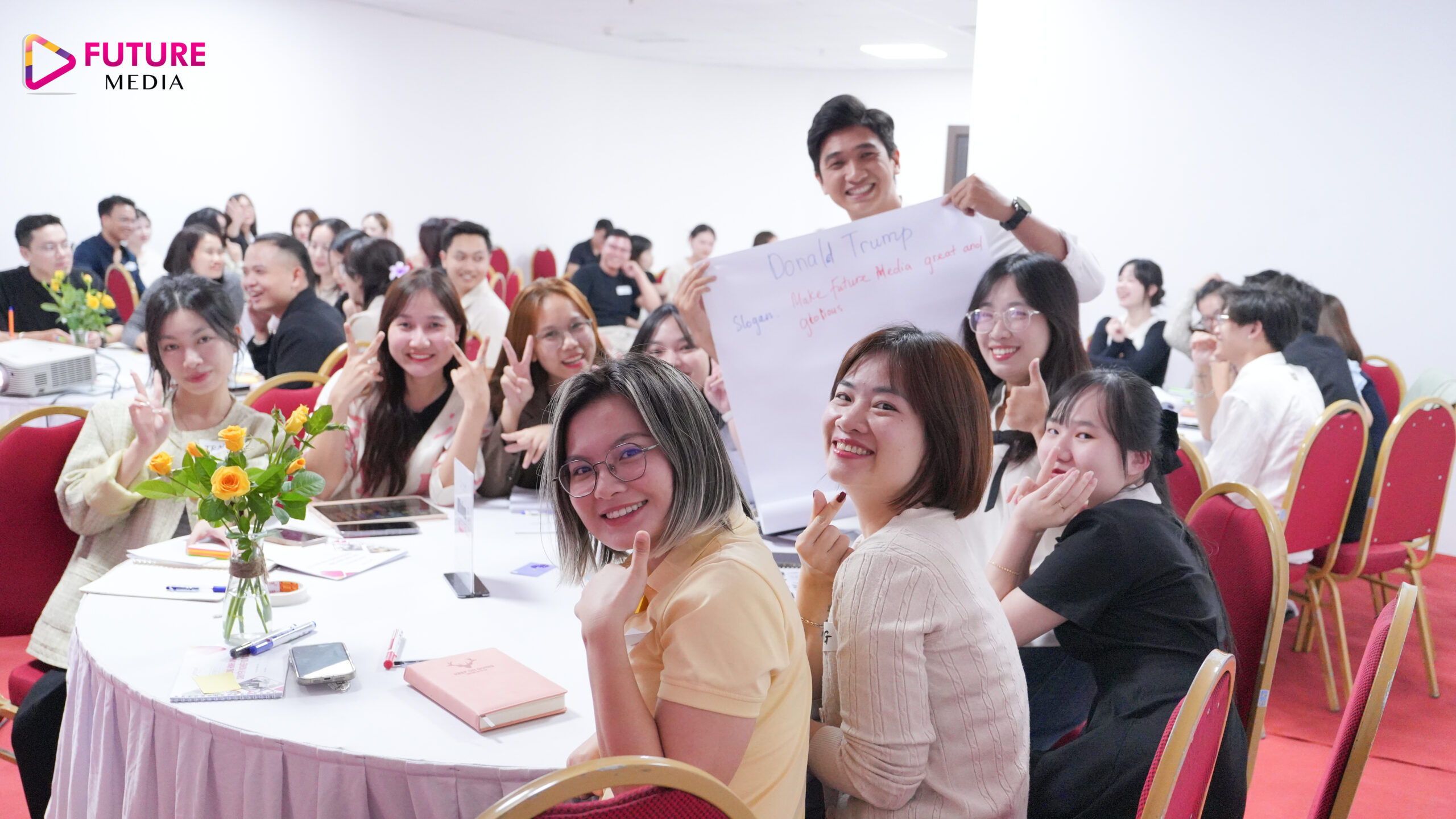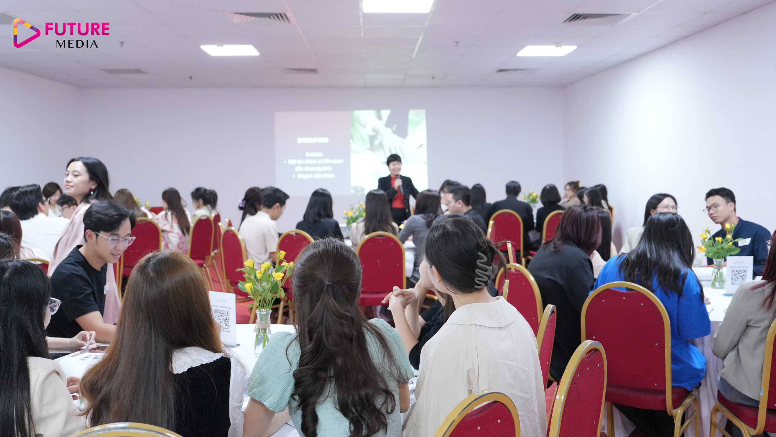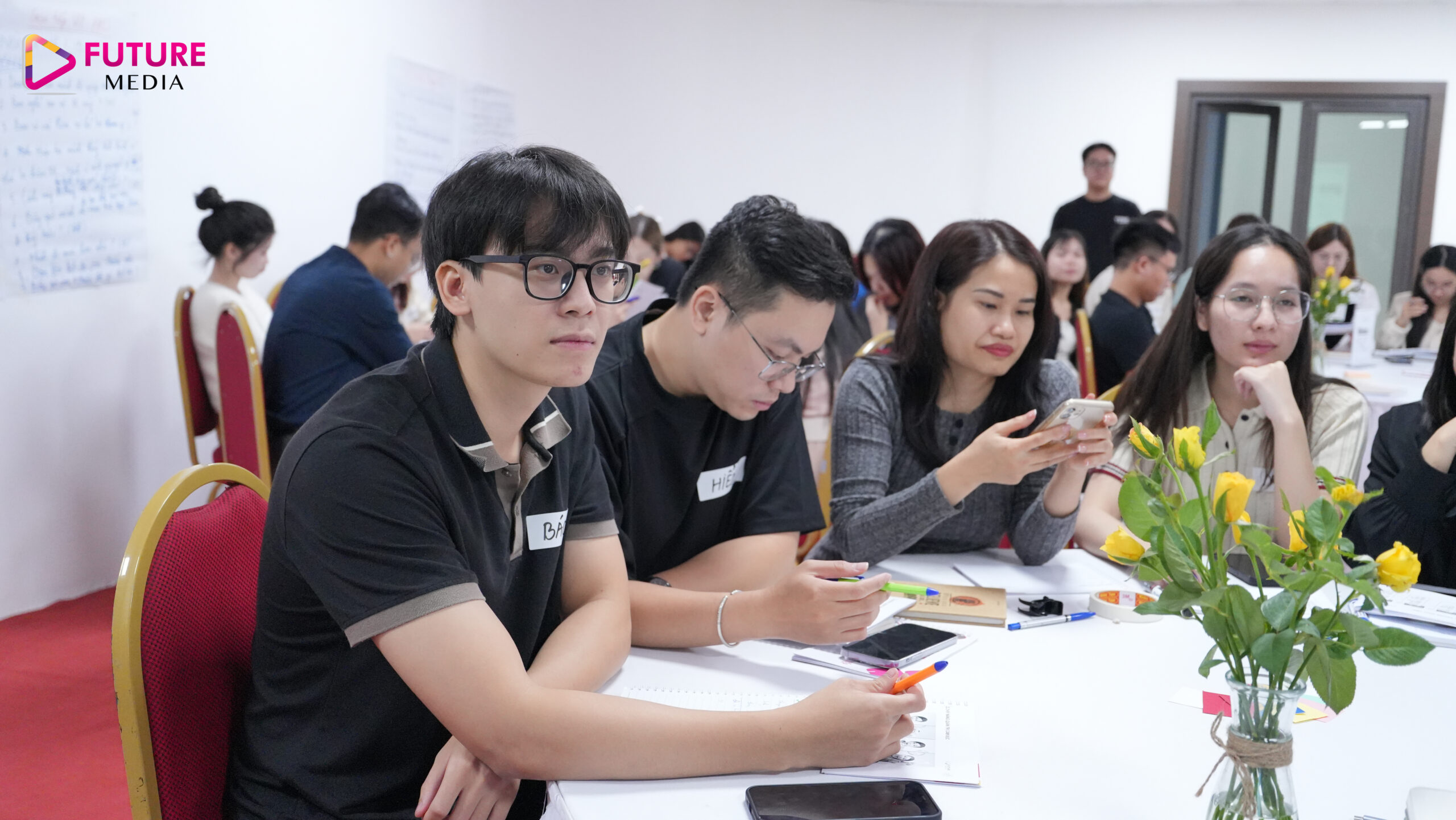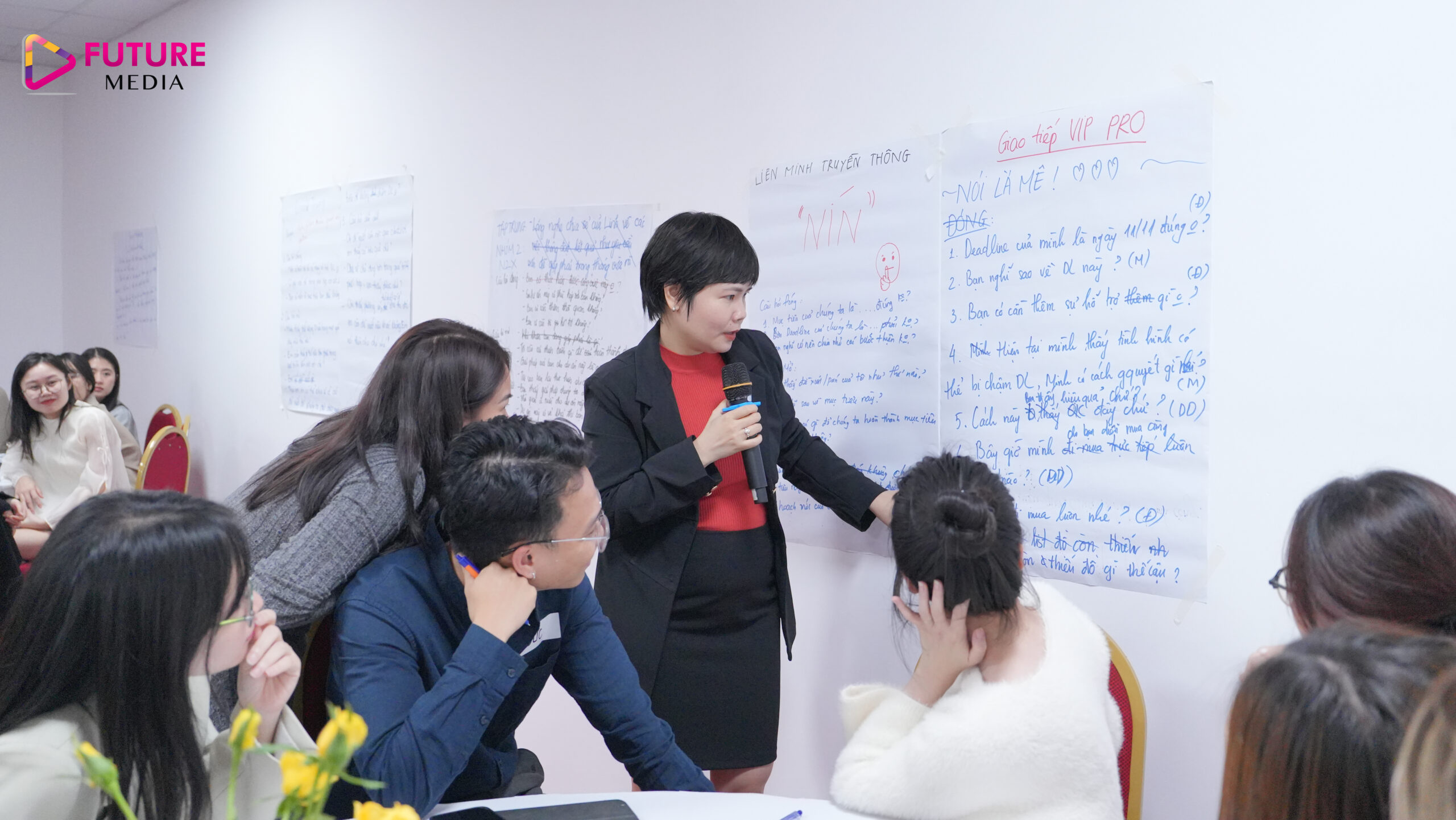 Với mục tiêu phát triển Công ty lớn mạnh bắt đầu từ phát triển năng lực nhân sự cho đội ngũ cốt cán nhà Future Media, chương trình đào tạo về “Xây dựng hình ảnh chuyên nghiệp qua giao tiếp” đã được tổ chức với sự tham gia đông đủ của các cấp quản lý và nhân sự nguồn nhà F.