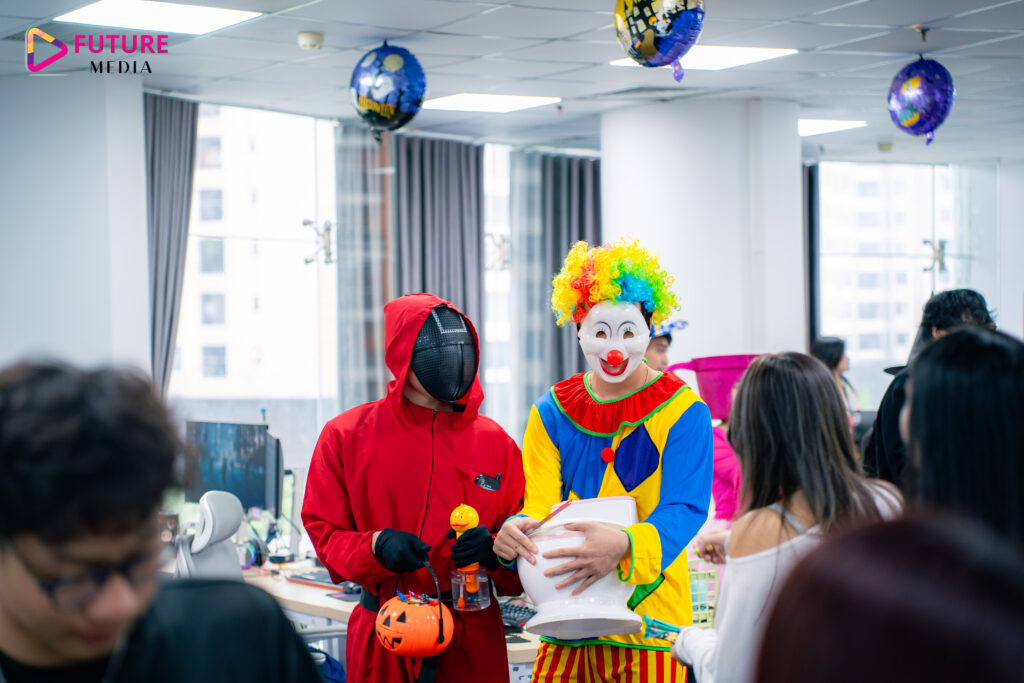 Sáng ngày 31/10/2025, văn phòng Future Media trở nên náo nhiệt hơn bao giờ hết khi khoác lên mình diện mạo hoàn toàn mới. Từng góc làm việc, hành lang đều tràn ngập sắc màu Halloween, tạo nên không gian ma mị nhưng vô cùng vui nhộn.
