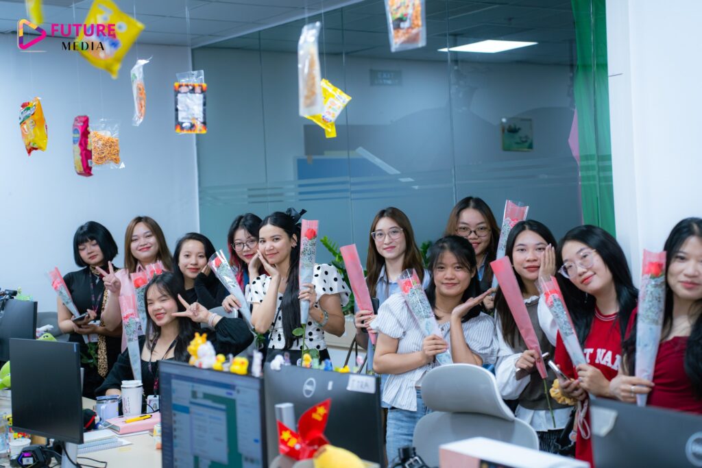Ngày 20/10/2025, văn phòng Future Media ngập tràn trong không khí tươi vui và rộn ràng sắc hồng của Ngày Phụ nữ Việt Nam. Đây là dịp đặc biệt để tập thể công ty gửi lời tri ân, yêu thương và tôn vinh đến toàn thể những “bông hồng” rực rỡ của nhà F – những người không chỉ tài năng trong công việc mà còn lan tỏa nguồn năng lượng tích cực mỗi ngày.