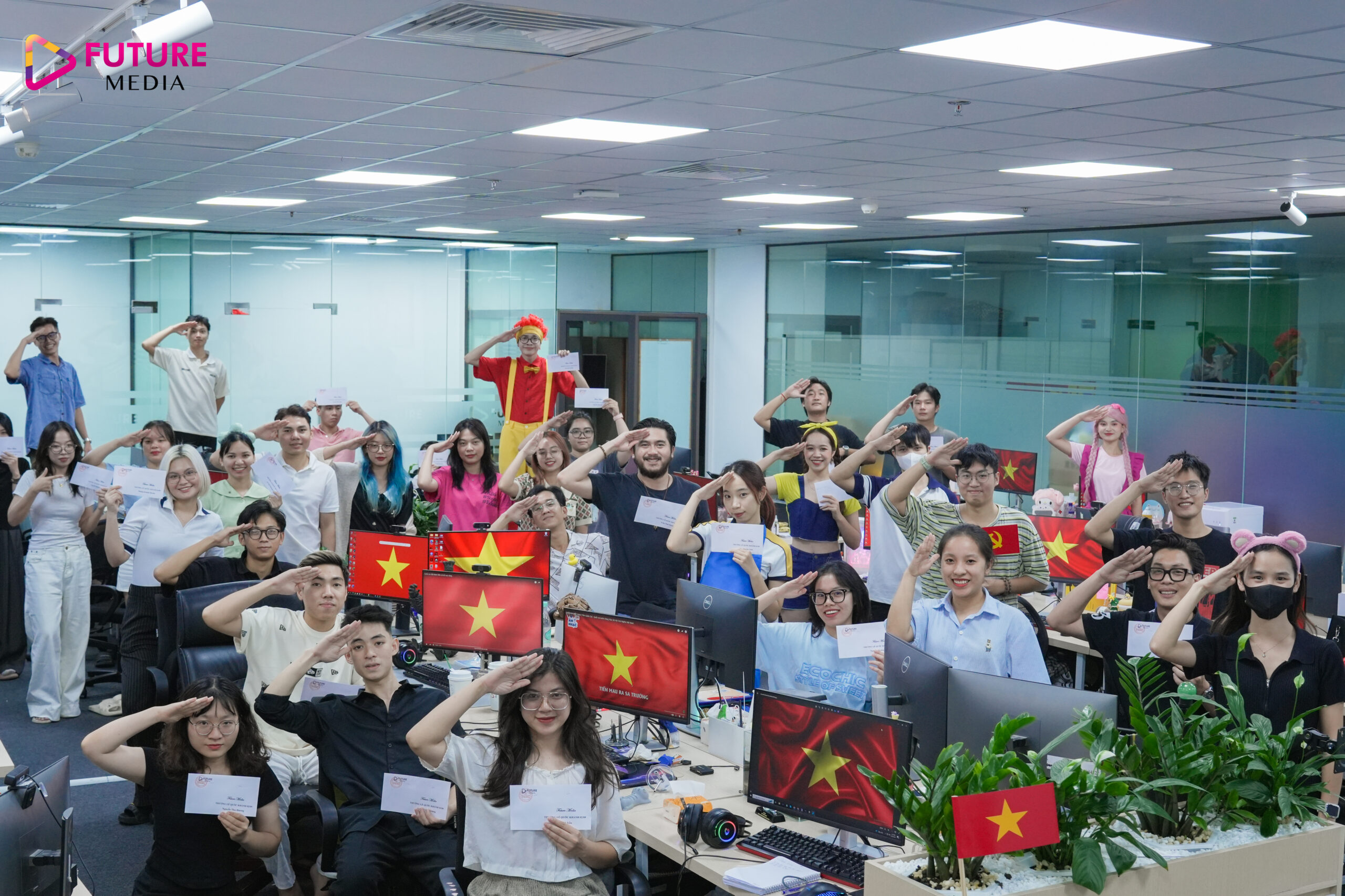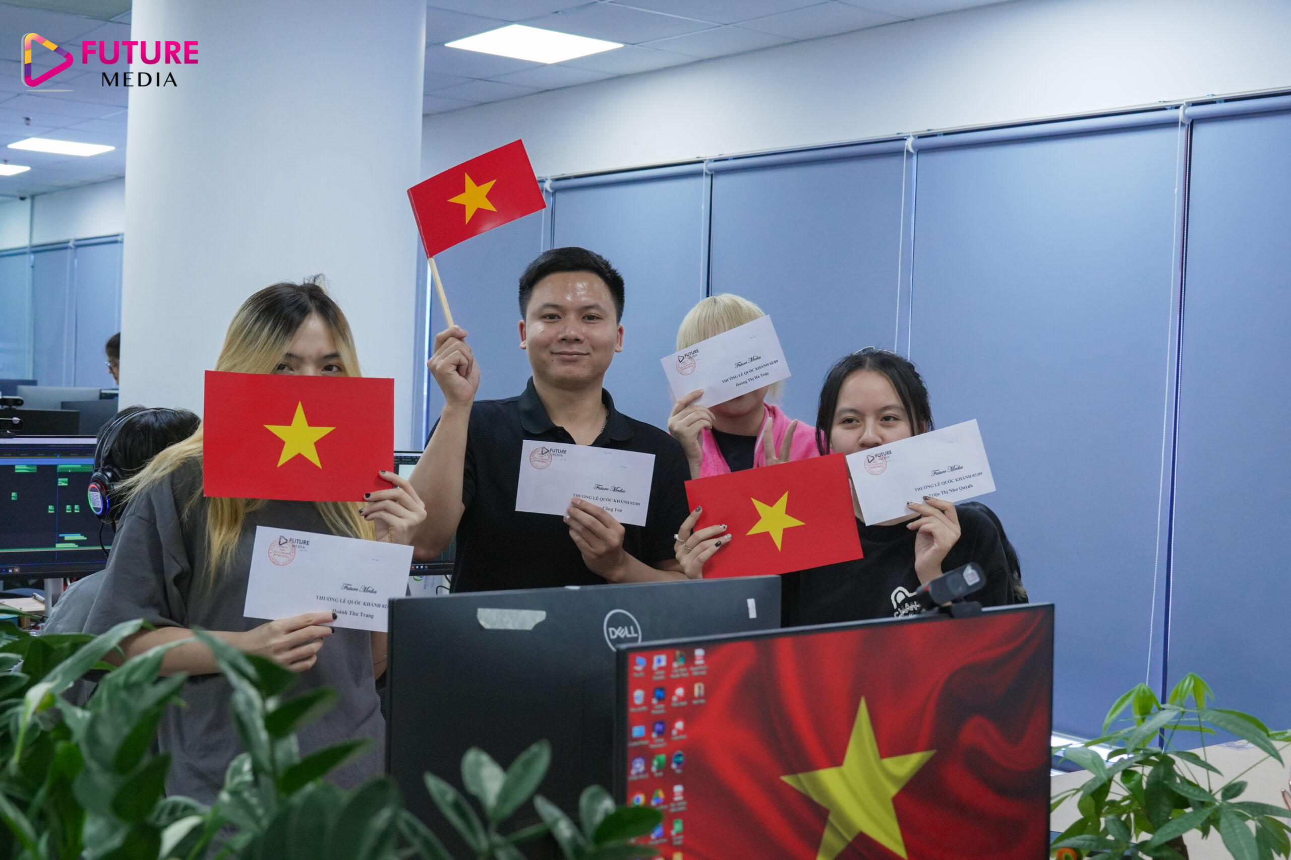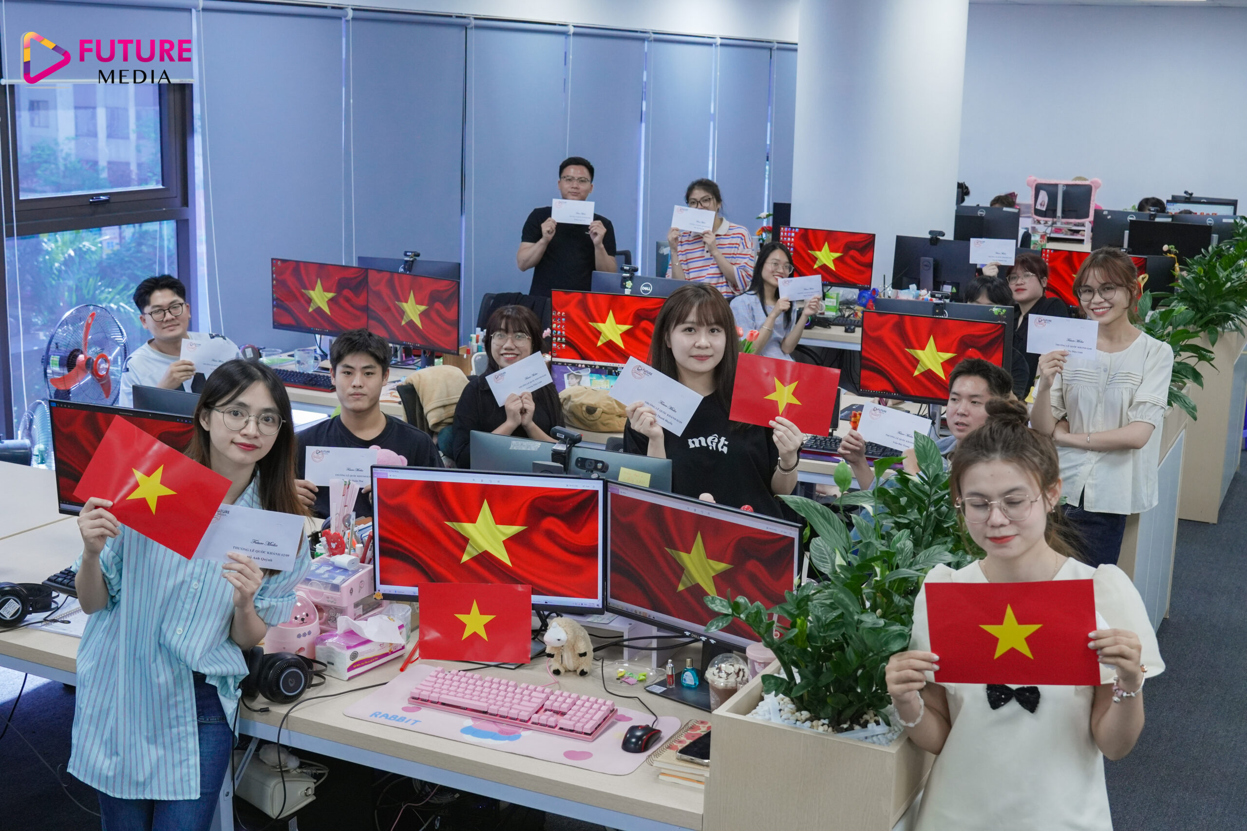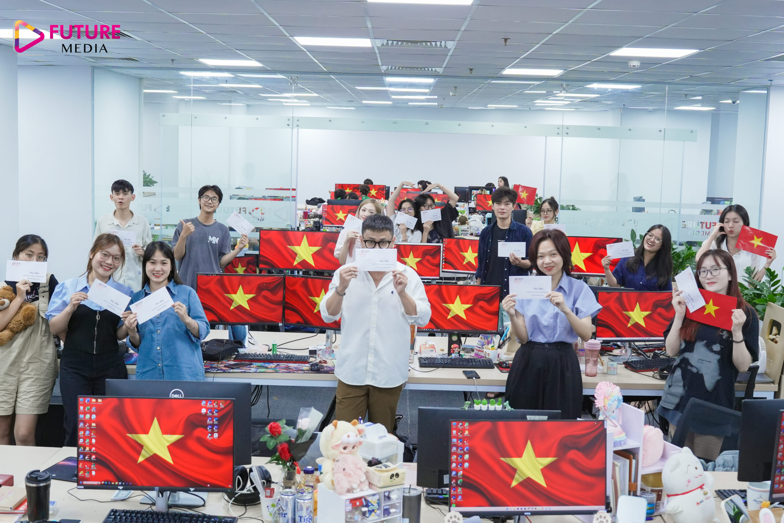 Ngày làm việc cuối trước kỳ nghỉ Lễ Quốc Khánh, Future Media đã tiến hành trao tận tay quà nghỉ Tết độc lập tới tận tay FMers. Văn phòng Future Media cũng hòa chung sắc đỏ cùng cả nước ngày Tết Độc Lập. Dạo một vòng văn phòng nhà F, anh chị em FMers đã cùng nhau chụp ảnh chào đón Lễ Quốc Khánh 2/9