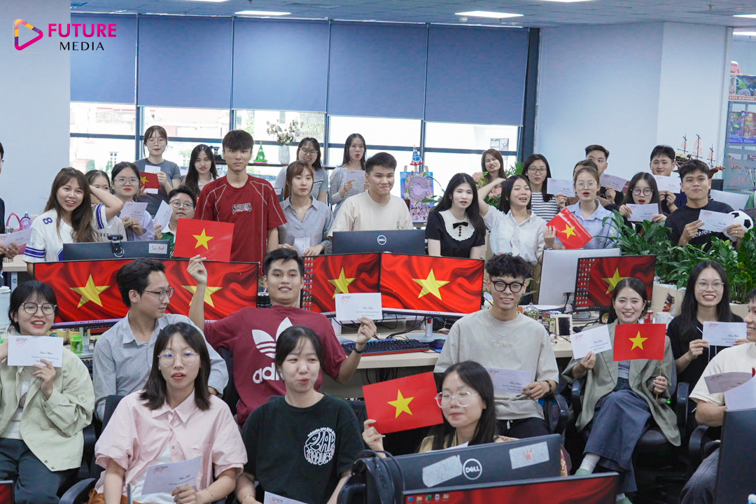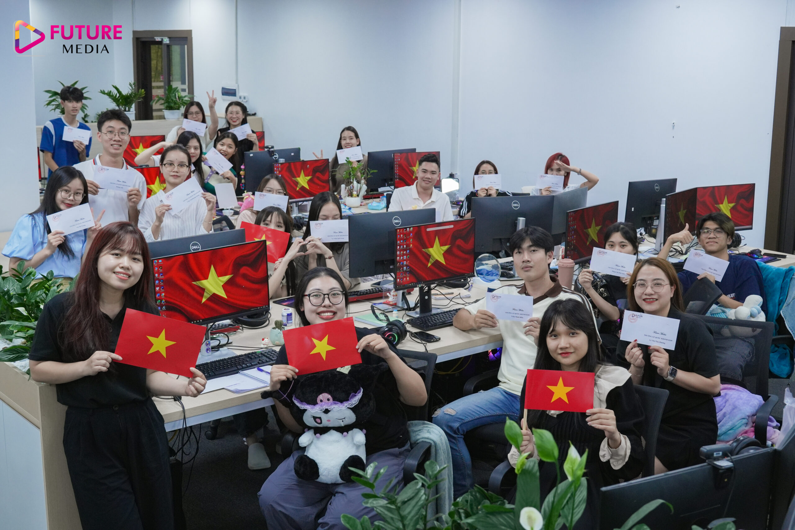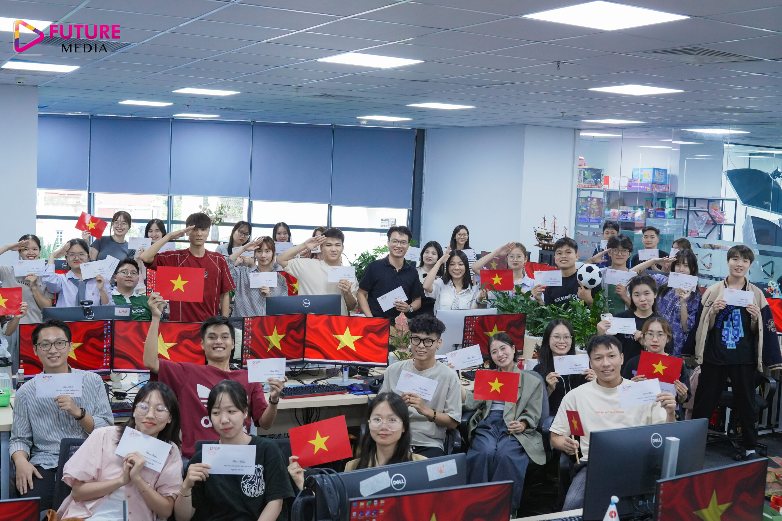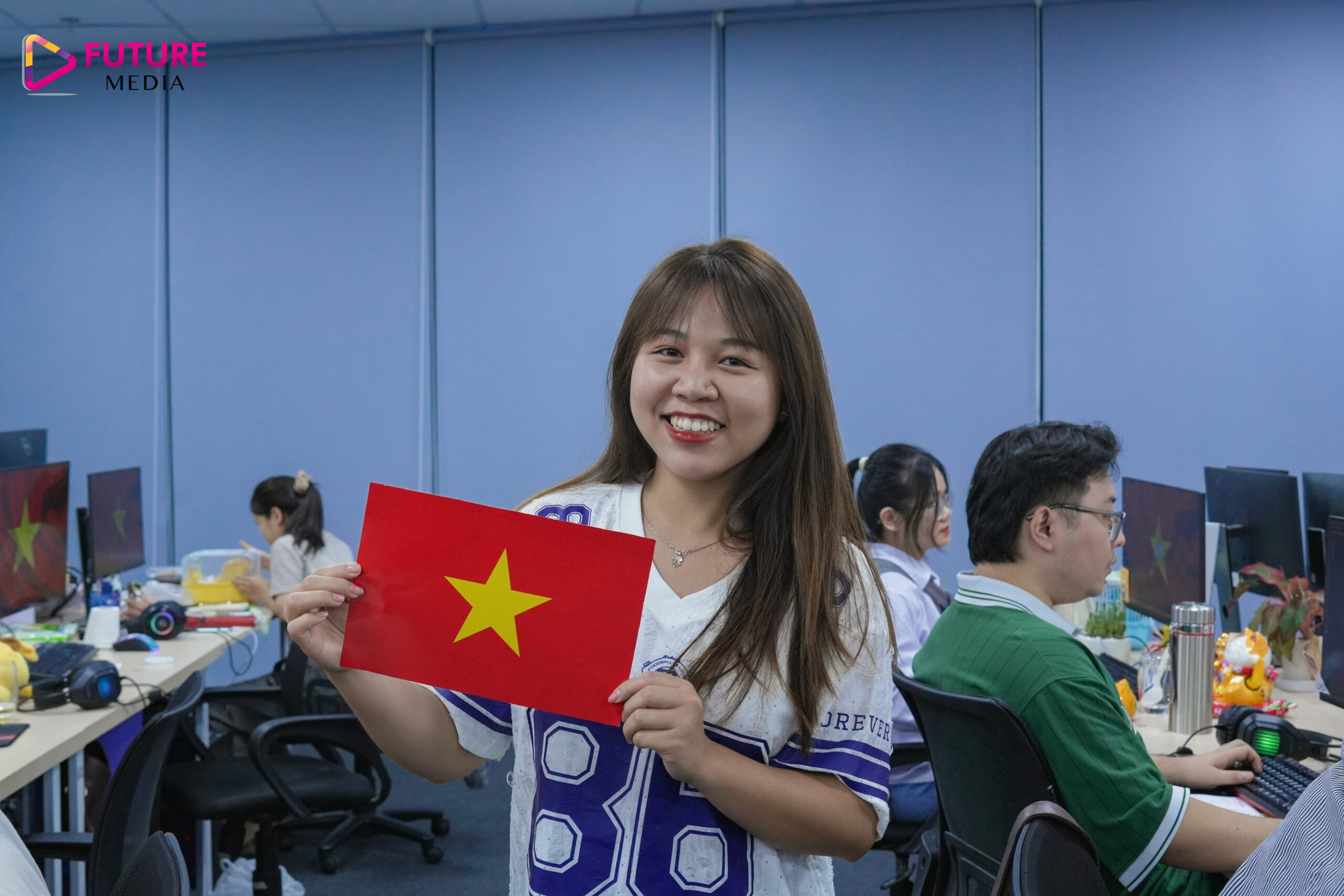 Ngày làm việc cuối trước kỳ nghỉ Lễ Quốc Khánh, Future Media đã tiến hành trao tận tay quà nghỉ Tết độc lập tới tận tay FMers. Văn phòng Future Media cũng hòa chung sắc đỏ cùng cả nước ngày Tết Độc Lập. Dạo một vòng văn phòng nhà F, anh chị em FMers đã cùng nhau chụp ảnh chào đón Lễ Quốc Khánh 2/9