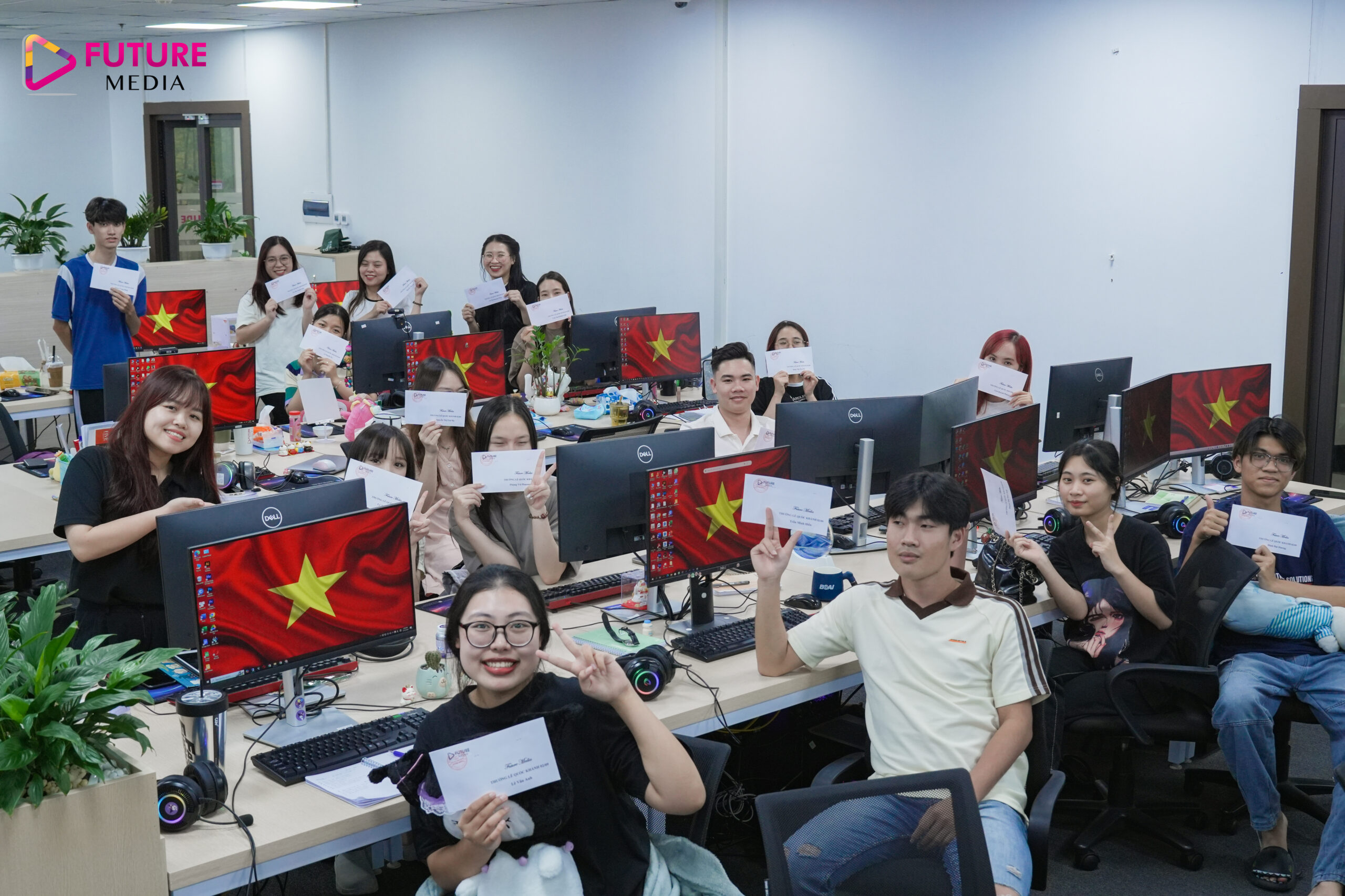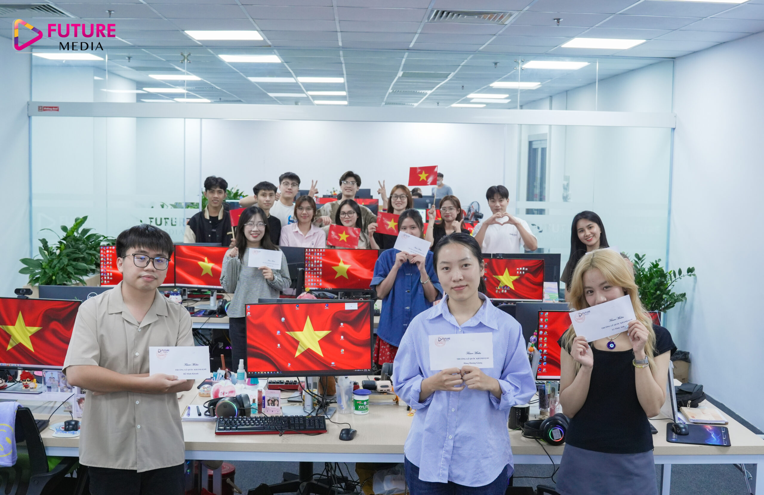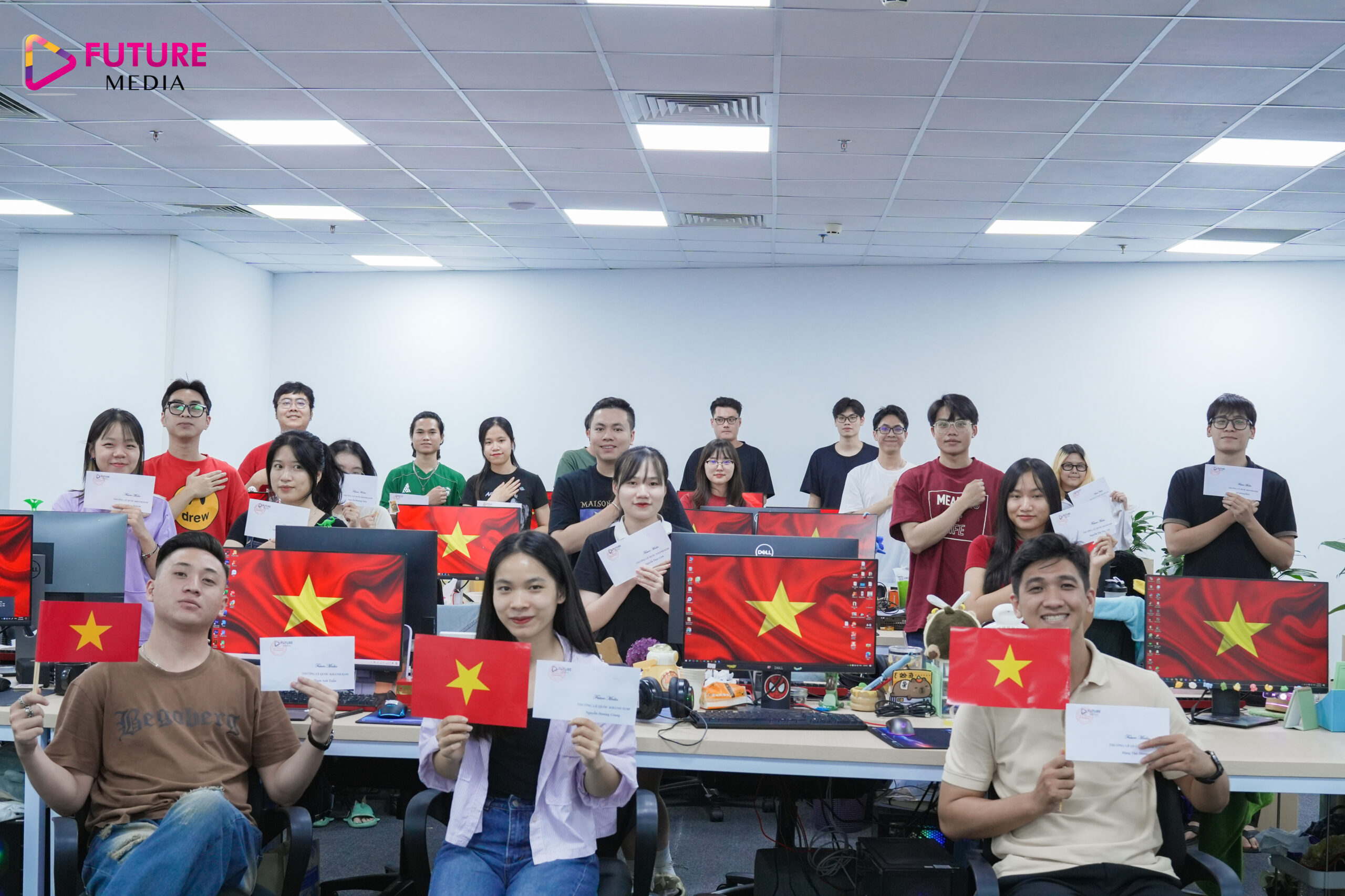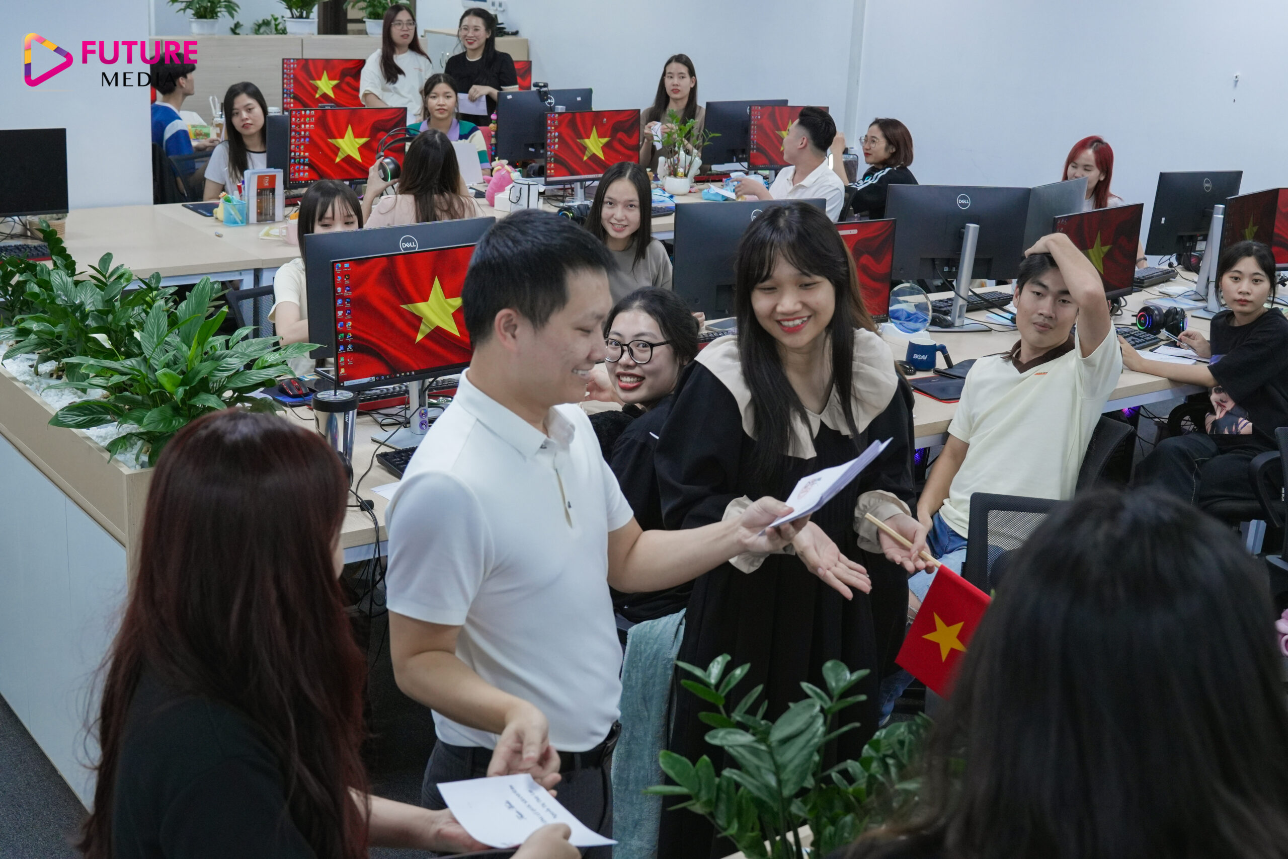 Ngày làm việc cuối trước kỳ nghỉ Lễ Quốc Khánh, Future Media đã tiến hành trao tận tay quà nghỉ Tết độc lập tới tận tay FMers. Văn phòng Future Media cũng hòa chung sắc đỏ cùng cả nước ngày Tết Độc Lập. Dạo một vòng văn phòng nhà F, anh chị em FMers đã cùng nhau chụp ảnh chào đón Lễ Quốc Khánh 2/9